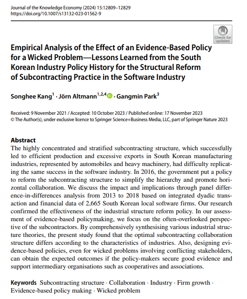 • 논문 제목: Lessons Learned from the South Korean Industry Policy History for the Structural Reform of Subcontracting Practice in the Software Industry