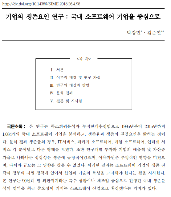 • 논문 제목: 기업의 생존요인 연구: 국내 소프트웨어 기업을 중심으로